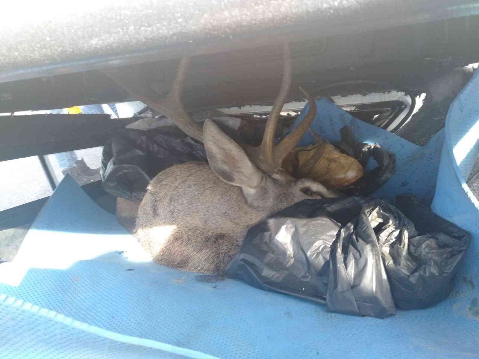 Avcıların kamyoneti takla attı, bagajda avlanması yasak geyik bulundu