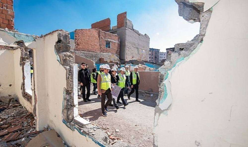 İzmir Büyükşehir Belediye Başkanı Tunç Soyer, Örnekköy Kentsel Dönüşüm Alanı’nda beşinci etap için başlatılan yıkım çalışmalarını yerinde inceledi.