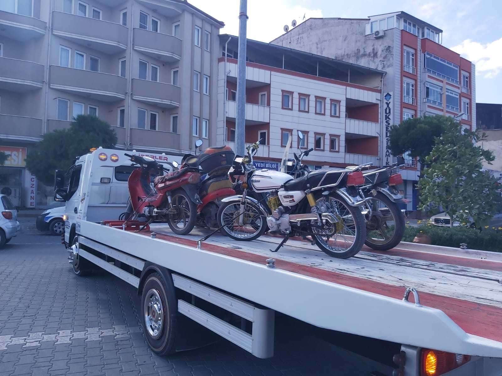 Burhaniye’de turizm sezonunun bitmesine rağmen, devam trafik yoğunluğunu düzenlemek için gayret gösteren trafik ekipleri, son günlerde motosiklet denetimlerini artırdı. Trafik Büro Amiri Özgül Reçel’in öncülüğündeki ekipler. dün yaptıkları denetimlerde, tescilsiz ve abartılı egzoz kullanan 9 motosikleti trafikten men ederek yediemin deposunu gönderdi. Denetimlerin devam edeceği açıklandı.