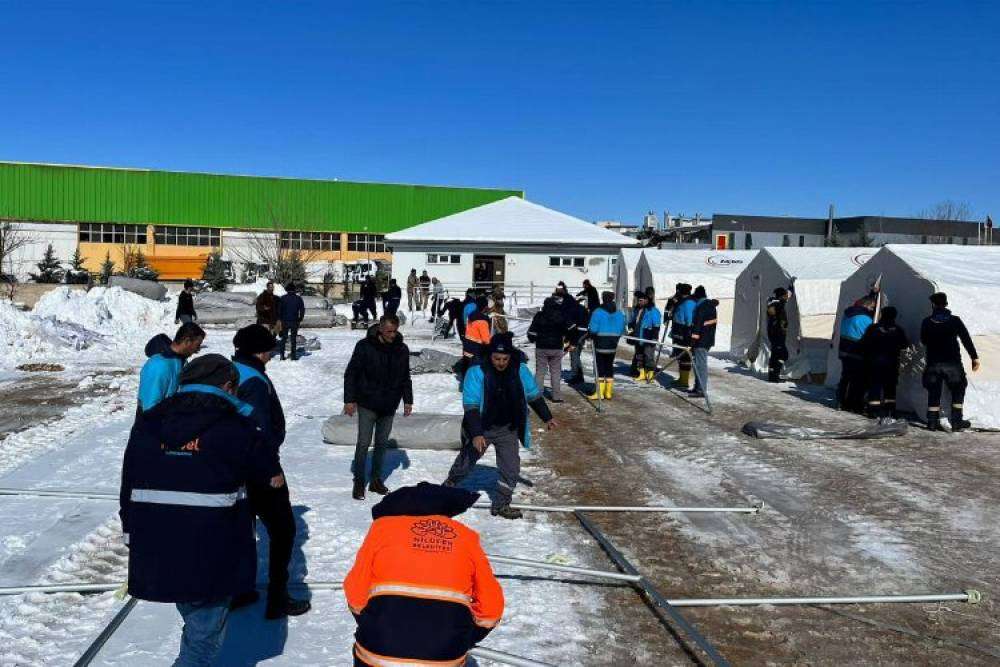 Battaniyeden gıdaya, bebek bezinden ayakkabıya kadar bütün malzemelerin zamanla yarışılarak bölgeye ulaştırıldığını vurgulayan Başkan Özkan, Gemlik Belediyesi'nin İskenderun'a aşevi kurduğunu, Nilüfer Belediyesi'nin koordinasyonunda depremzedelerin Bursa'da barınabilmeleri için "Evim Evin Olsun" sloganıyla başlatılan çalışmanın da sürdüğünü kaydetti. Özkan, Mudanya Belediyesi'nin de 16 kişilik Arama Kurtarma Birimi ve 62 gönüllü belediye personelinin halen deprem bölgesinde faaliyetini sürdürdüğünü belirterek, toplam 6 TIR yardım malzemesinin de Mudanya'dan bölgeye gönderildiğini söyledi.