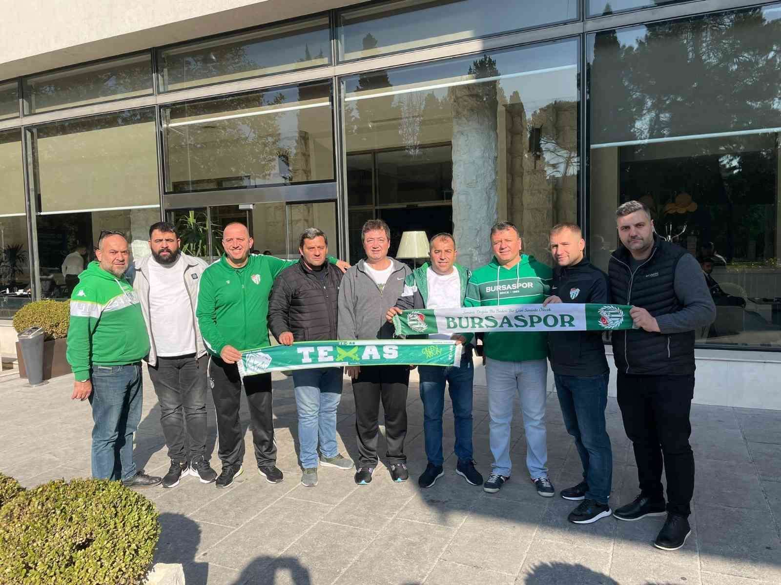 Bursaspor’un taraftar grubu Teksas, A Millî Futbol Takımı’nın kamp yaptığı oteli ziyaret etti.Bursaspor’un taraftar grubu Teksas, Yeşil beyazlı takıma verdiği desteğin yanı sıra A Millî Takımı da hiçbir yerde yalnız bırakmıyor. Ay-yıldızlıları bugüne kadar katıldığı her organizasyonda destekleyen yeşil beyaz sevdalıları, bu akşam oynanacak kritik karşılaşma öncesi de Karadağ’a gitti. Karşılaşma öncesi Millî Takım’ın kaldığı otele giderek teknik heyet ve futbolculara başarı dileyen Teksas grubu üyeleri, daha sonra Türkiye Futbol Federasyonu’nun Bursalı Yönetim Kurulu Üyesi Mustafa Çağlar’la bir araya gelip, gösterdiği yakın ilgiden dolayı teşekkür etti. Bursaspor taraftarının gücünü sadece Bursa’da değil millî maç için gittikleri her ülkede hissettiklerini ifade eden Mustafa Çağlar, "Bir Bursalı olarak, kardeşlerimi, hemşehrilerimi burada görmek beni onurlandırdı. Sağolsunlar her maçta yanımızdalar, kendilerine teşekkür ediyorum” dedi.