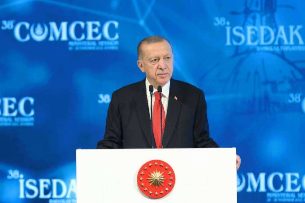 ANKARA (İGFA) - Cumhurbaşkanı Erdoğan, İstanbul Kongre Merkezi'nde düzenlenen, İslam İşbirliği Teşkilatı (İİT) Ekonomik ve Ticari İşbirliği Daimi Komitesi (İSEDAK) 38. Toplantısı Açılış Programı'nda davetlilere hitap etti.