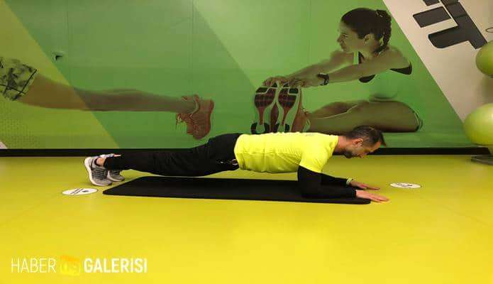 Hareketin Yapılışı: Dirseğin omzunun tam altında kalacak şekilde ayaklarını destek noktası olarak kullanıp bedenini yerden kaldır ve zamana karşı bekle. Yandan bakıldığında kalçan omzun ve kulakların aynı çizgide olsun. Üç kez 20-60 saniye arası tekrarla, her set arası 45-60 saniye dinlen.