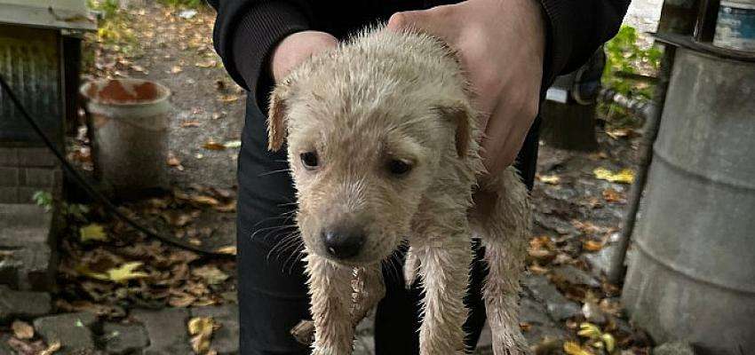 Dereye düşen yavru köpeği Büyükşehir İtfaiyesi kurtardı