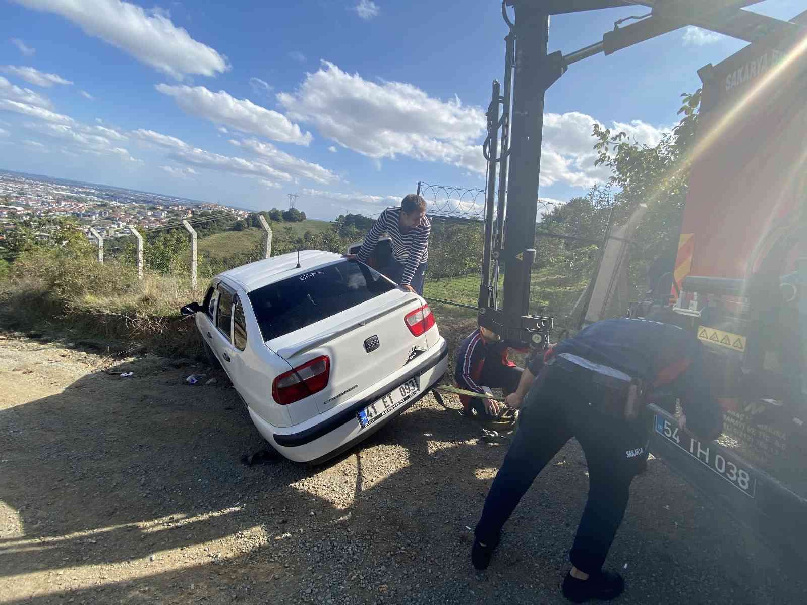 Alınan bilgiye göre, Serdivan ilçesi Kemalpaşa Mahallesi Kırantepe mevkiinde kontrolden çıkan A.Ş. idaresindeki otomobil yol kenarında bulunan hendeğe devrilmek üzereyken durdu. Otomobilden inen sürücü A.Ş. ve arkadaşı T.E. devrilebileceği korkusu ile paniğe kapılarak biri arka koltuğuna diğer ise aracın üzerine çıkarak beklemeye başladı. Telefonla 1 saat boyunca 16 tane kurtarıcı firması aradığını iddia eden sürücü olumlu yanıt alamayınca sorunu 112 Acil Yardım Hattı’na bildirdi. İhbarı değerlendiren itfaiye ekipleri, olay yerine gelerek devrilmek üzere olan otomobili kurtardı.