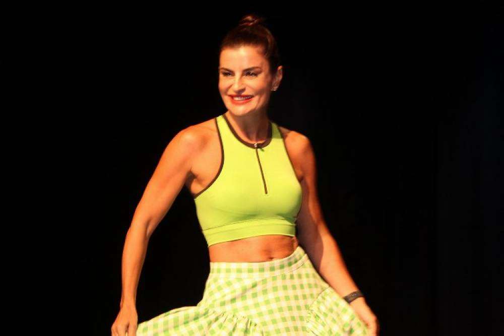 Mutluluk dansı ederek neşeli tavırlarıyla başladığı kabarık etekli gösterisinde spor yaptıracağı bölüme geçerken bir anda seyirciyi şaşırtarak sahnede etekten spora tayta geçti. Fit görünümüyle dikkat çeken Vahapoğlu, gösterisinin geri kalanını tayt ve atletle tamamladı.