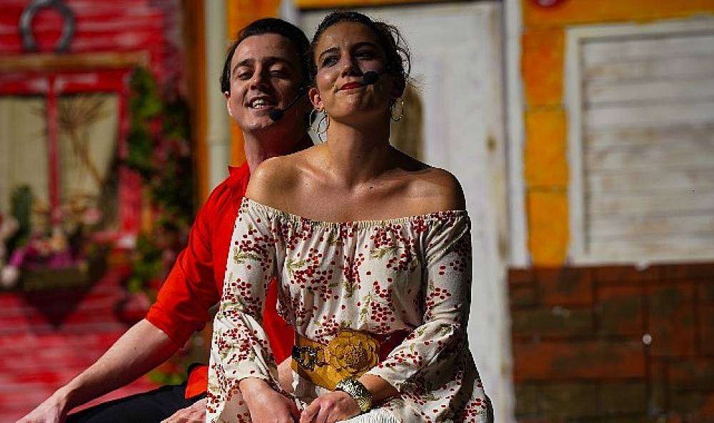 Gaziemir Belediyesi’nin düzenlediği etkinlikte sahne alan Sahne Tozu Tiyatrosu oyuncuları, Müjdat Gezen’in yönetmenliğinde sahneledikleri Gırgıriye oyunuyla izleyenleri kahkahaya boğdu.