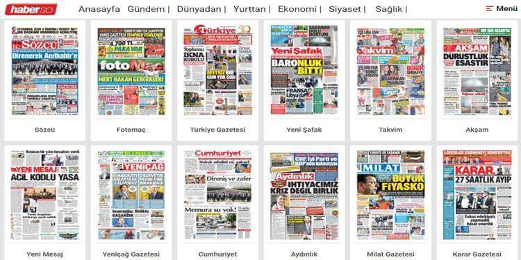 Haberso, manşetler bölümünde yerelden ulusala birçok gazete bulundurmaktadır. Bu gazetelerin bulunma amacı daha çok haber kaynağı olması ve halkın rahatlıkla daha çok haber kaynağını tarayabilmesidir. En doğru ve en güncel haberlerin bulundurulduğu haberso, amacına uygun olduğu için manşet haberleri açmıştır. Ulusal gazetelerin bulunma amacı ülke gündemini yakından takip etmektir. Ülkenin her karış toprağında ne oluyorsa ulusal gazeteler verir ve bu sayede biz haberdar olabiliriz. Ama gazetenin ulusal olması haber ayrıntılarını azaltır. Bunun çözümünü de haberso şu şekilde bulmuştur. Manşet haberleri bölümünde yerel gazetelere yer vermiştir. Böylece İstanbul, İzmir, Bursa ve Ankara gibi şehirlerin daha detaylı haber manşetleri de burada bulunacaktır. Okumak istediğiniz konu ulusal basına yansıyacak kadar büyük olmayabilir siz haber edinin diye yerel gazeteler manşetler bölümü içerisinde. Örnek vermek gerekirse Bursa'da olan bir olayı ulusal gazetede bulamayabilirsiniz ama bir Bursa gazetesine baktığınızda onu bulmanız daha muhtemeldir.Manşetler Bölümündeki Gazeteler