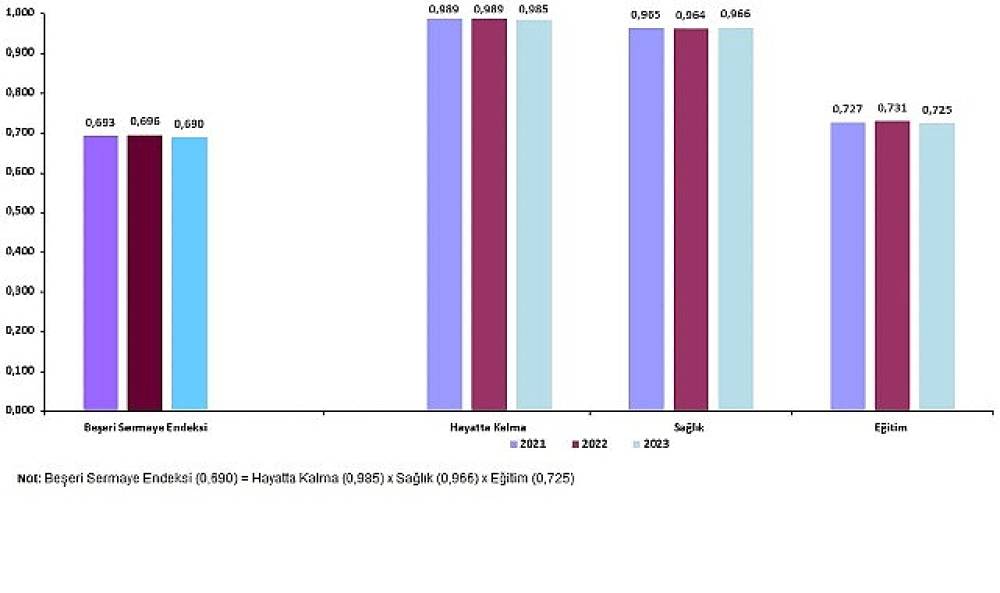 Beşeri sermaye endeksi, 2021 yılında 0,693 iken 2022 yılında 2021'e göre %0,5 artarak 0,696 oldu. 2023 yılında 2022'ye göre %0,9 azalarak 0,690 oldu.