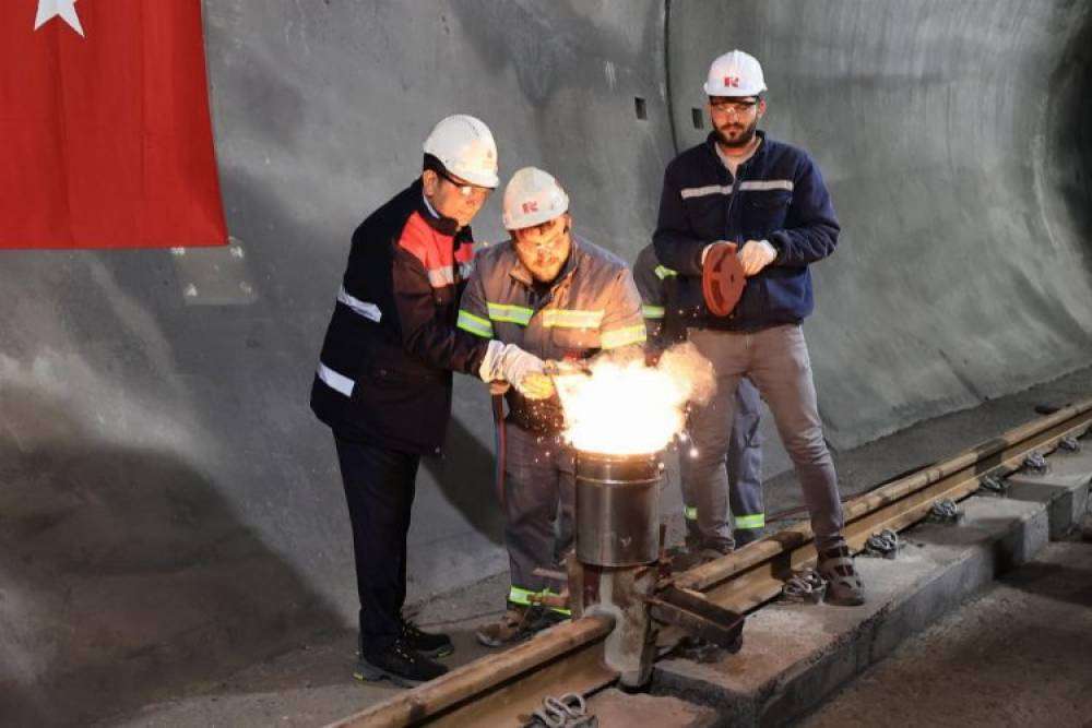 İBB Başkanı Ekrem İmamoğlu; 3 ilçeden geçecek, 11 istasyonlu, 13 kilometrelik Ümraniye-Ataşehir-Göztepe metro hattına döşenecek ilk rayları kaynattı.
