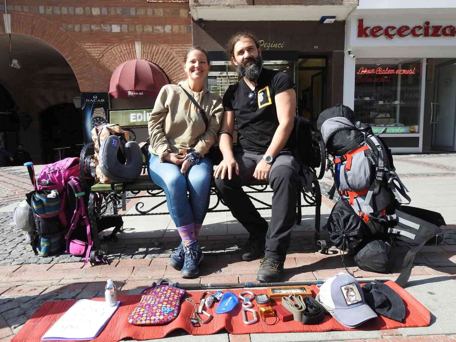 Edirne’nin tarihi ve turistik noktalarını gezdikten sonra yanlarındaki eşyaları Saraçlar Caddesi’nde satışa çıkaran gezginler, çevredekiler tarafından yoğun ilgi gördü. Çevre duyarlılığını arttırmayı hedefleyen gezgin çiftin, satışa çıkardığı ürünlere fiyat bile biçmediği görüldü. Vatandaşların merak edip yanlarına geldiğini ve o sırada onlara amaçlarını anlatma imkânı bulduklarını belirten Yavuz, "Almak isteyen gönlünden ne koparsa alıyor. Fiyat belirlemedik. Çünkü amacımız farkındalık oluşturmak. Edirne’ye sadece Selimiye’yi görmek için geldik. Nişanlım Amerikalı. O Selimiye’yi çok merak ediyordu. Camiler karşı özel bir ilgisi var. Gittiğimiz her yerde camileri fotoğraflıyor. Bir yandan da Türkiye’nin Amerika’ya karşı olan negatif algısını değiştirmeye çalışıyor” dedi.