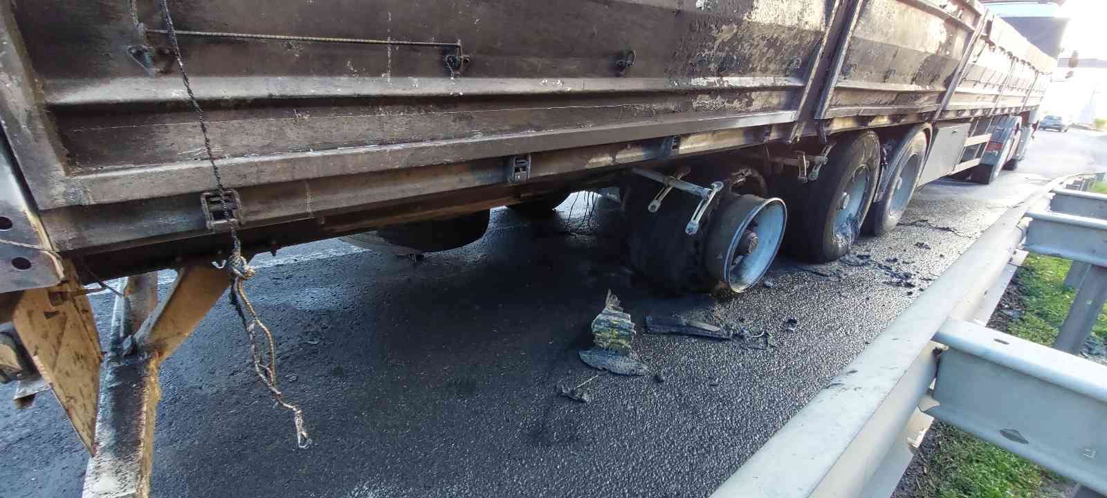 İstanbul’dan Çanakkale’ye kiltaşı götüren tır Tekirdağ’da seyir halindeyken alev aldı.Tır yangını İstanbul-Tekirdağ yolu üzeri Hayrabolu Kavşağında meydana geldi. Edinilen bilgiye göre, İstanbul’dan Çanakkale’ye kiltaşı götüren A.Ş. idaresindeki 17 ZB 910 plakalı tır, seyir halindeyken bir anda lastiği patlayarak balatalarından alev çıktı. Alevleri fark eden tır sürücüsü, aracı sağa çekerek yangına müdahale etmeye çalıştı. Tırdaki alevleri fark eden çevredeki vatandaşlar da durumu itfaiyeye bildirdi. Kısa sürede itfaiye ekipleri de olay yerine gelmesiyle tırda çıkan yangın büyümeden söndürüldü. Olay yerine gelen polis ekipleri çevrede güvenlik önlemleri alırken, söz konusu yangının çıktığı tır ise güvenli bölgeye alındı.