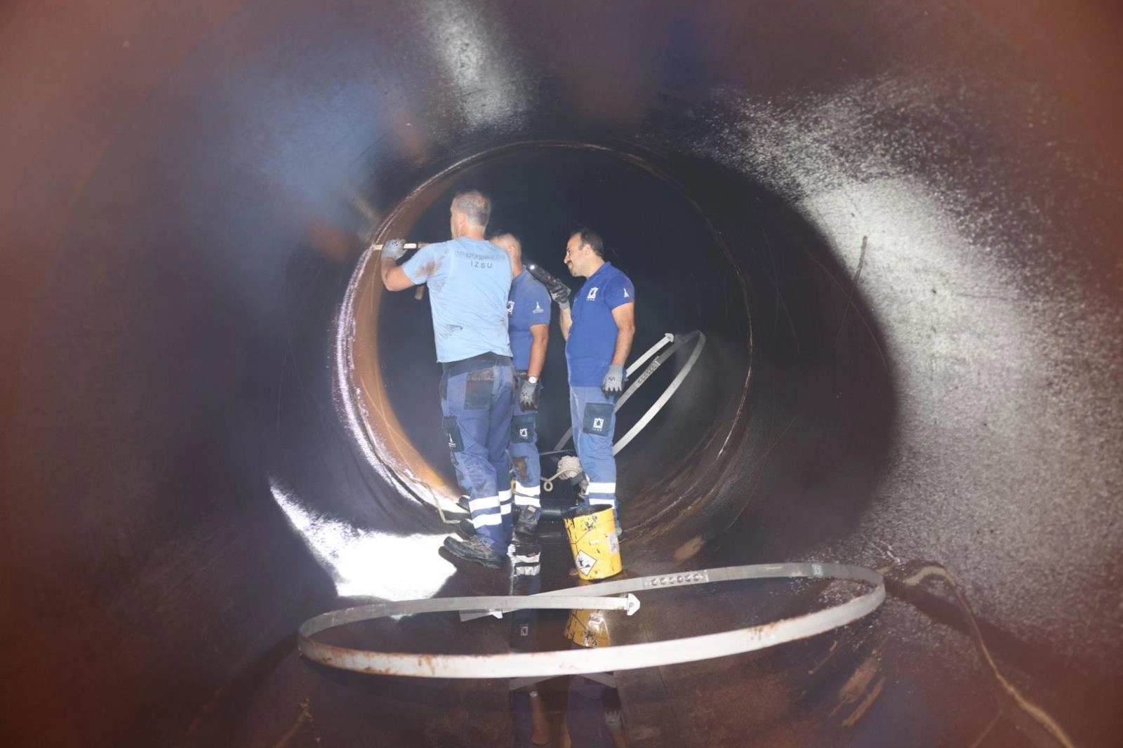 Arızalanan hattaki boru çapının büyüklüğü ve teknik özelliklerine uygun olarak boru içinden ve dışından başlatılan onarım işlemleri gece boyunca devam etmiş ve çalışma tamamlanmıştır.