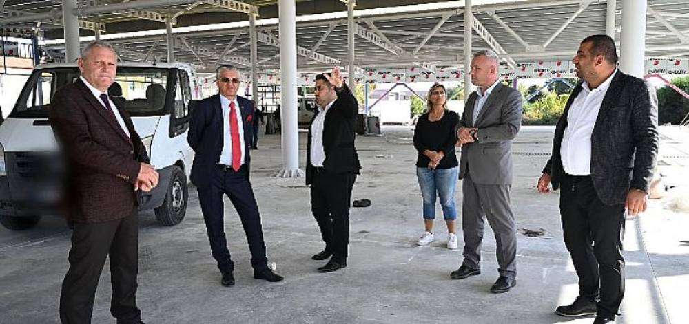 Belediye Başkanı Topaloğlu, büyük ölçüde tamamlanan Çamyuva kapalı pazar yerinde incelemelerde bulunarak çalışmalar hakkında bilgi aldı.
