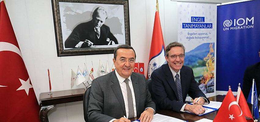 Konak Belediyesi’nin uygulayıcısı olduğu, Uluslararası Göç Örgütü işbirliği ve Konak Belediyesi Spor Kulübü Derneği ortaklığıyla yürütülecek Engel Tanımayanlar Projesi’nin protokolü, Konak Belediye Başkanı Abdül Batur ileIOM Acil Durum Koordinatörü David Savard tarafından imzalandı.Konak Belediyesi’nde yapılan imza törenine Konak Belediye Meclisi Üyesi ve Çocuk Hakları Komisyonu Üyesi Burhan Yılmaz,Konak Belediyesi Araştırma ve Geliştirme (ARGE) Müdürü Turan Ateş, Uluslararası Göç Örgütü İzmir Ofis Müdürü Pınar Genç Akçakaya, Ulusal İletişim Koordinatörü Gamze Adlı, Kıdemli İletişim Asistanı Cansın Gül Bakırcıoğlu, Kıdemli Proje Asistanları Ayşe Gül Kaplan ve Anastasia Sağlam ile Proje Asistanları Oya Erbaş ve Ayşenur Sarı da katıldı.