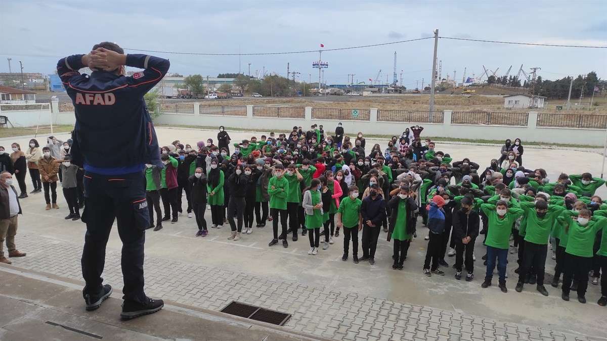 Tekirdağ Marmaraereğlisi Anadolu İmam Hatip Lisesi’nde öğretmen ve öğrencilerine, afet ve acil durumlara yönelik farkındalık eğitimi verilirken, eğitim sonunda deprem tahliye tatbikatı gerçekleştirildi.
