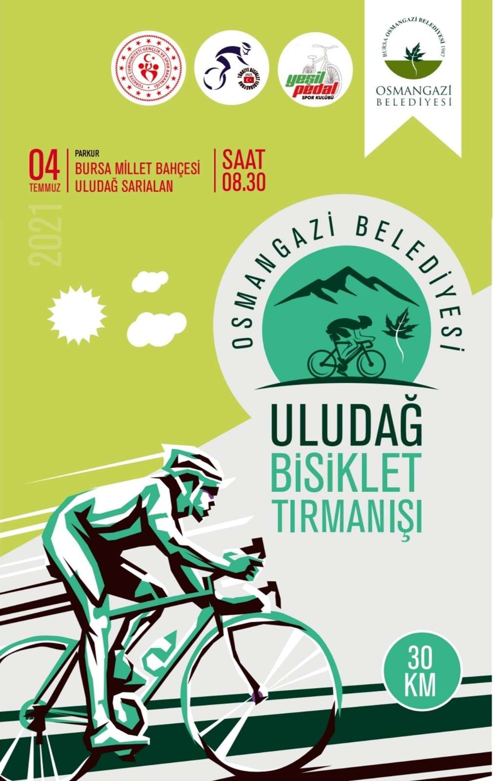 Osmangazi Belediyesi’nin bu yıl ilk kez düzenleyeceği Uludağ Bisiklet Tırmanışı, 4 Temmuz Pazar günü gerçekleştirilecek. Bisiklet tutkunlarının bir araya geleceği yarış, Çekirge Millet Bahçesi önünden başlayıp Uludağ Sarıalan’da sona erecek.Bisikleti özendirmek için ‘Uludağ Bisiklet Tırmanışı’ yarışması düzenleyen Osmangazi Belediyesi, yüzlerce bisiklet tutkununa ev sahipliği yapacak. Bursa Millet Bahçesi ve Sarıalan arasında toplam 31,7 kilometre parkur uzunluğuna sahip olan yarış, kadın ve erkeklerde 18-20 yaş grubundan başlayarak, 60-64 yaş grubuna kadar 10 farklı kategoride düzenlenecek. Pandemi sebebiyle 500 kişi ile sınırlandırılan yarışa katılmak isteyen bisiklet tutkunları, 2 Temmuz Cuma günü saat 23.50’ye kadar www.osmangaziuludagtirmanisi.com sitesinden başvuru yapabilecek. Yarışın gerçekleştirileceği 4 Temmuz Pazar günü 08.30-13.00 saatleri arasında yarış güzergâhı trafiğe kapalı olacak.
