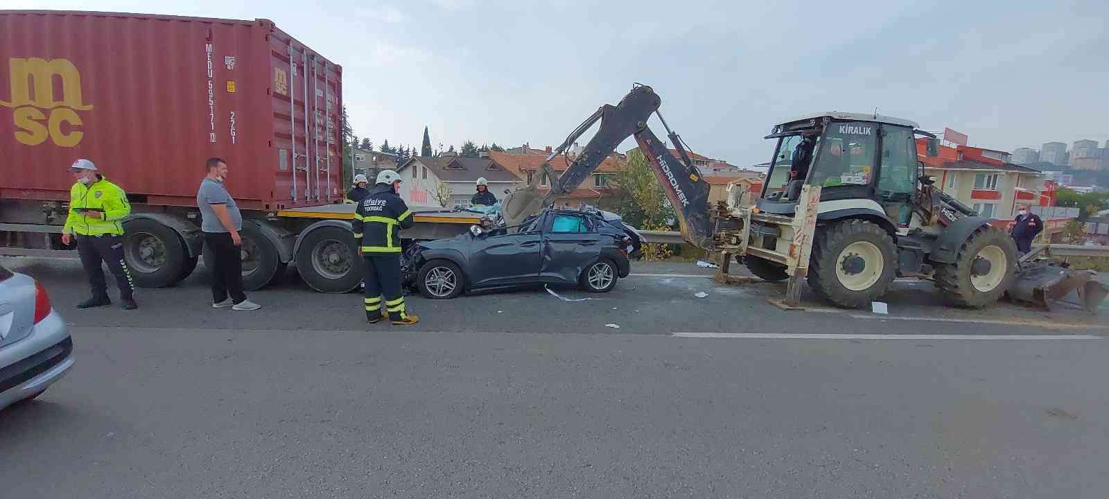 Kısa sürede bölgeye gelen ekiplerin çalışması ile tıra arkadan ok gibi saplanan otomobilin sürücüsü ağır yaralı halde sıkıştığı yerden çıkarılarak, hastaneye sevk edildi. Hastaneye sevk edilen otomobilin sürücüsü tedavi altına alındı. Bölgeye gelen polis ekipleri de, kaza bölgesinde güvenlik önlemleri aldı.