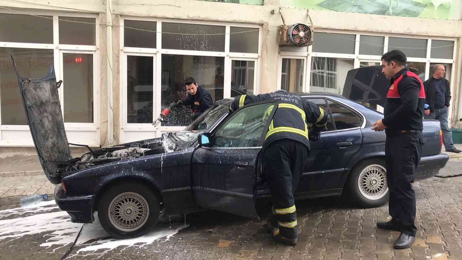 Edirne’nin Uzunköprü ilçesinde park halindeki bir otomobilde yangın çıktı. İtfaiye ekiplerince kısa sürede söndürülen yangın sonucu otomobil kullanılamaz hale geldi.Uzunköprü ilçesi Subay Lojmanları sokakta meydana gelen olayda, park halinde bulunan bir otomobilin motor kısmında aniden duman ve alevler yükseldi. Araçtan çıkan alev ve dumanları gören vatandaşlar hemen 112 Acil Yardım Hattına ihbarda bulundu. Kısa sürede bölgeye gelen itfaiye ekipleri tarafından yangın kısa sürede kontrol altına alındı. Soğutma çalışmalarının ardından otomobil çekiciyle yedi emin otoparkına kaldırıldı.Yanan otomobilin kapılarını açmaya çalışan bir vatandaş ise elinden yaralanarak Uzunköprü Devlet Hastanesi acil servisine kaldırıldı. Yaralının durumunun ise iyi olduğu öğrenildi..Olay ile ilgili soruşturma başlatıldı.