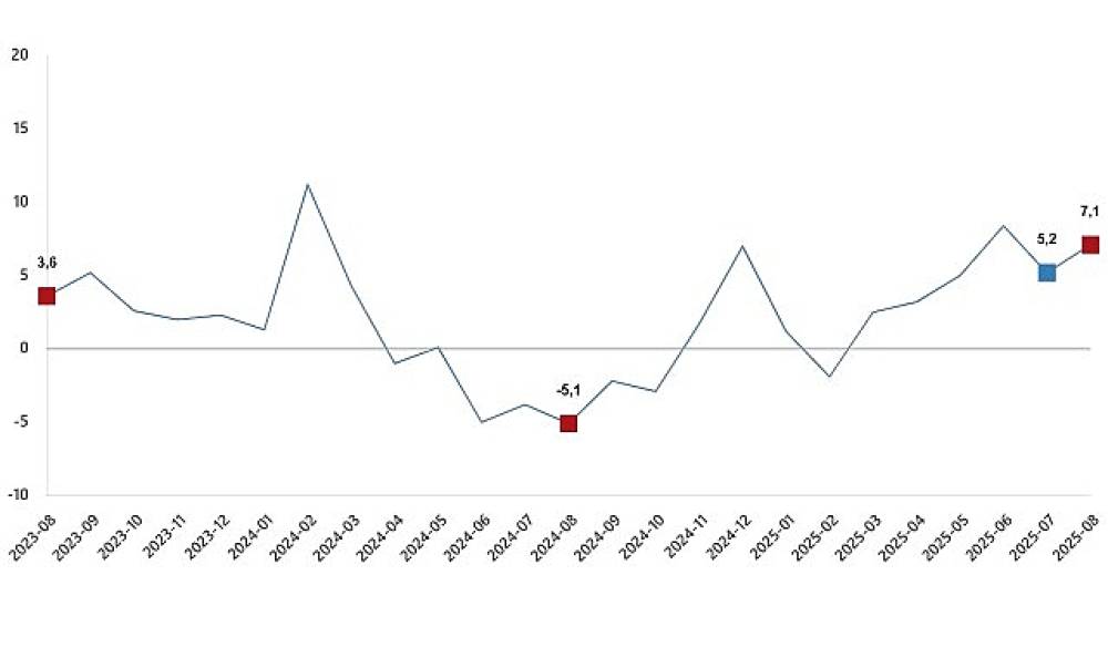 Sanayi üretim endeksi aylık değişimleri(%), Ağustos 2025