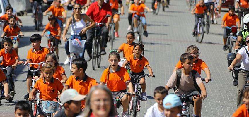 Selçuk'ta öğrenciler okula bisikletle gitti