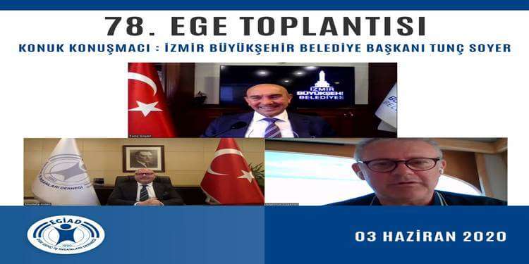 Covid-19 sebebiyle ilk kez online olarak gerçekleşen Ege Toplantısı’na, EGİAD Dernek Üyeleri, Danışma Kurulu Üyeleri, paydaş kurumların temsilcileri, iş dünyası derneklerinin başkan ve yöneticileri ile cemiyet hayatının önde gelen isimleri yoğun ilgi gösterdi. EGİAD Danışma Kurulu Başkanı Mahmut Özgener’in de katıldığı toplantıda, İzmir Büyükşehir Belediye Başkanı Tunç Soyer önemli açıklamalarda bulundu.