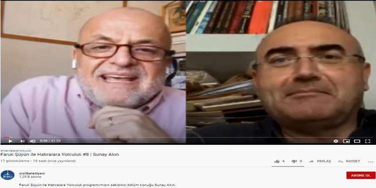 Şişli Belediyesi tarafından düzenlenen, Dünya Gazetesi Kültür Sanat Editörü Faruk Şüyün’ün hazırladığı ‘Hatırlara Yolculuk’ etkinliklerinin 19 Temmuz tarihindeki konuğu şair ve yazar Sunay Akın oldu. Program, Şişli Belediyesi’nin Facebook, Instagram, Twitter ve Youtube hesaplarından canlı yayınlandı.