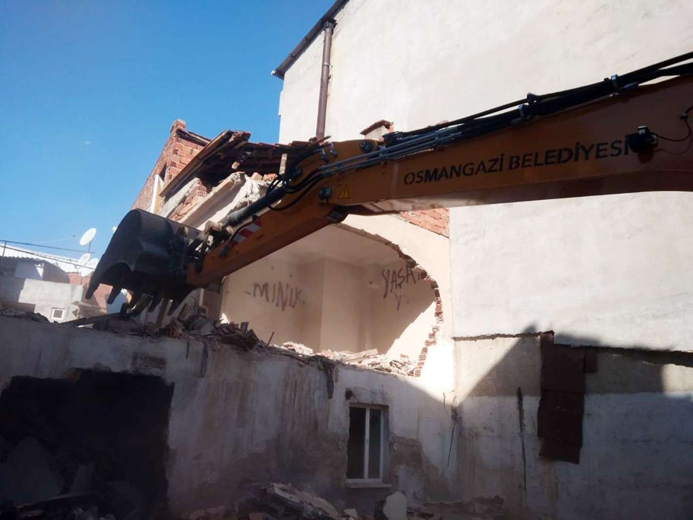 Osmangazi Belediyesi, mahalle sakinlerinin talebi üzerine Soğanlı Mahallesi 1. Öztürk Sokak’ta yer alan ve tehlike arz eden iki metrûk binayı yıktı.